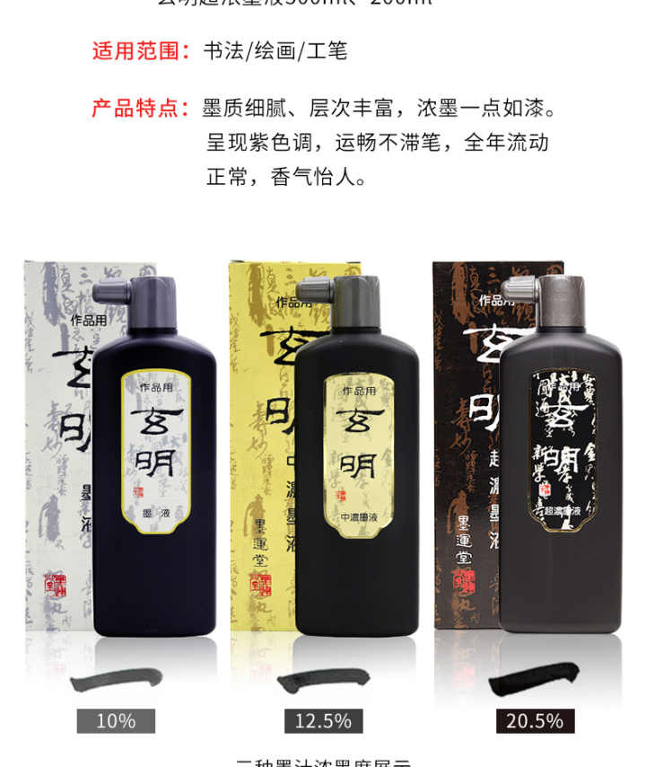 玄明墨汁文房四宝书法国画专用墨运堂墨液500g荣宝斋大容量墨水